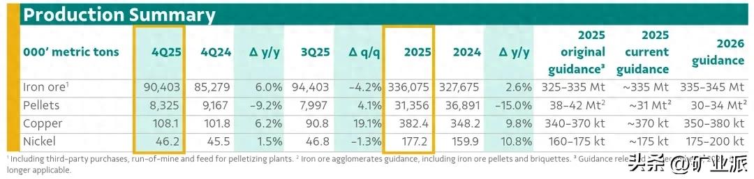 铁矿石产量达到3.36亿吨,为2018年以来最高水平。这一数字不仅标志着公司从2019年布鲁马迪纽尾矿坝事故后的漫长复苏之路画上句号,更重新确立了其在全球铁矿石供应格局中的核心地位。