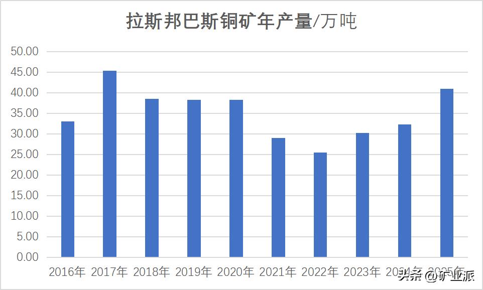 2016年7月,拉斯邦巴斯(LasBambas)铜矿进入商业化生产,同年产铜33万吨, 2017年完成了首年满负荷生产,产铜45.4万吨,占五矿资源(MMG)2017年总铜产量的76%,助力五矿资源全年铜产量达到创纪录的59.8万吨。随后,该矿遭遇严重社区问题,甚至引发冲突,导致产量逐年下滑,2022年产量下滑至25.5万吨,但随着社区问题的解决,拉斯邦巴斯(LasBambas)铜矿产量连续三年稳步提升,时至今日,累计铜产量已超过350万吨,自2016年实现商业化生产至2025年4月,累计实现销售收入1610亿元,利润总额317亿元,净利润212亿元。