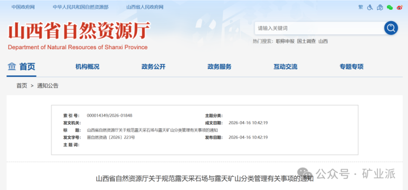 日前,山西省自然资源厅印发《关于规范露天采石场与露天矿山分类管理有关事项的通知》(下称《通知》),对露天开采矿山实施精细化分类与分级管理。《通知》明确,露天采石场是指露天开采原石,经破碎、筛分等简易工艺加工后,主要用于建筑砂石骨料等基础建材的矿山。新建、改扩建露天采石场的最低生产规模标准应达到50万吨/年,服务年限不少于5年(不含基建期)。露天矿山是指露天开采矿石,经深加工后作为工业原料使用的矿山,以及露天开采型材或金属矿产资源的矿山。除山西省委10号文明确矿种外,其他矿种生产规模必须严格遵循《山西省矿产资源规划》设定的最低准入标准。《通知》要求,建立市级管理露天矿山(矿种)目录动态调整机制,各市每两年对目录实施效果进行评估。同时,《通知》鼓励对市级管理矿种同一矿区或成矿带内的矿产资源进行综合评价、整体出让,实现资源规模化利用和科学化配置;支持各地合理开发利用特色优势矿种,鼓励引导矿山企业向深加工、高附加值方向转型;各市自然资源部门要与应急等部门建立协调机制,加强政策衔接与信息共享。