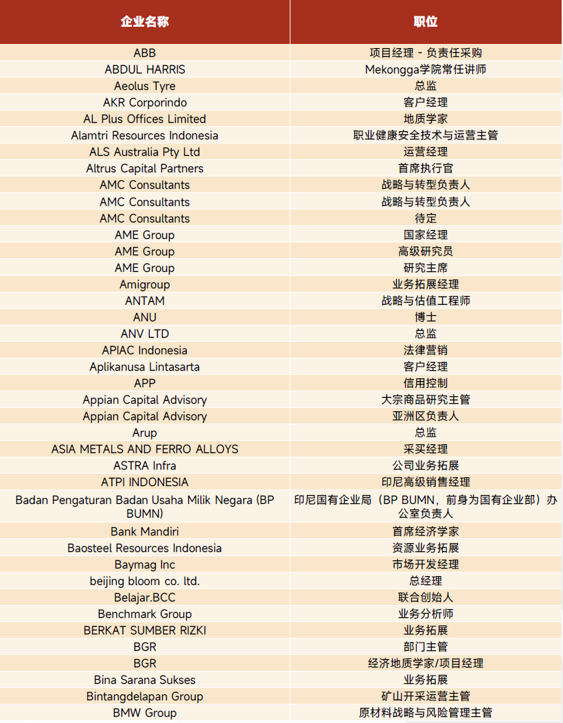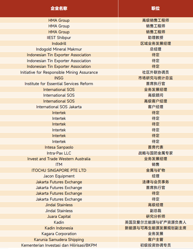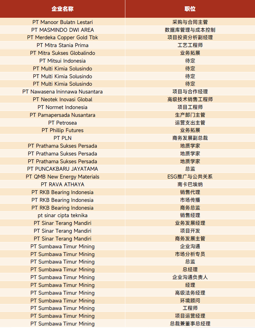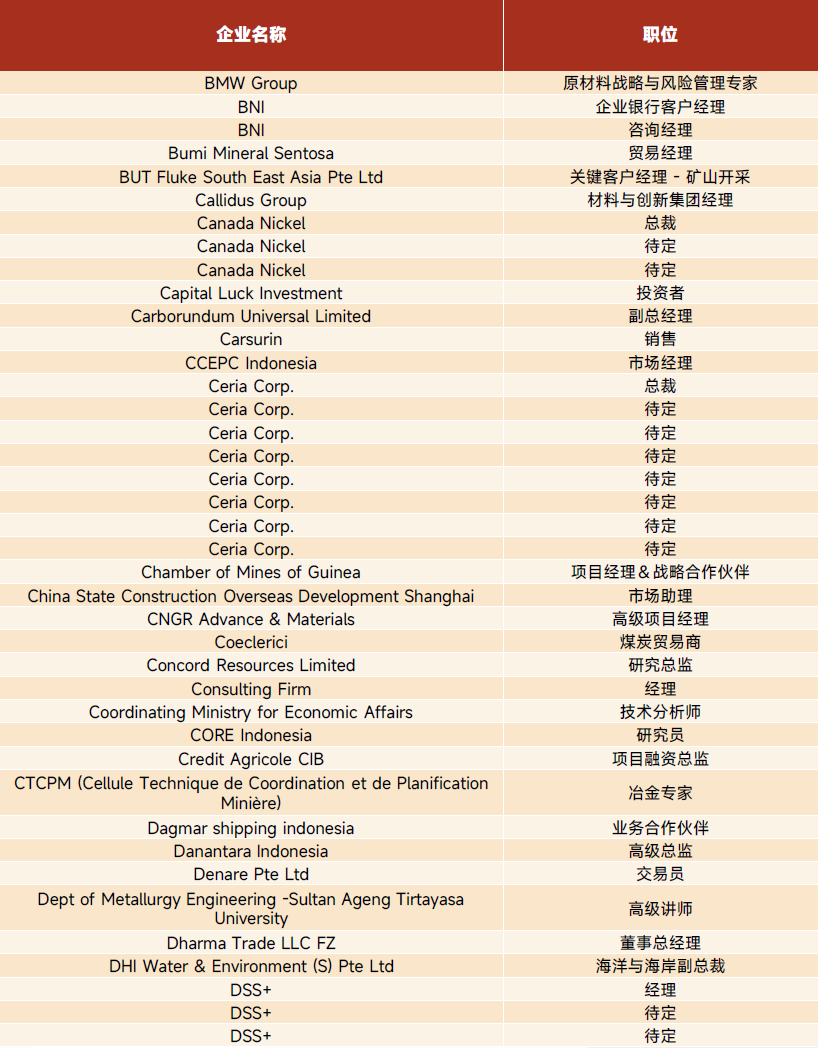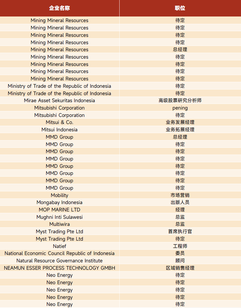 目前已确认企业覆盖矿业开发、冶炼加工、装备制造及相关服务等多个环节,参会主体持续增加。企业参与节奏正在加快,围绕印尼资源与产业链合作的对接需求逐步升温。