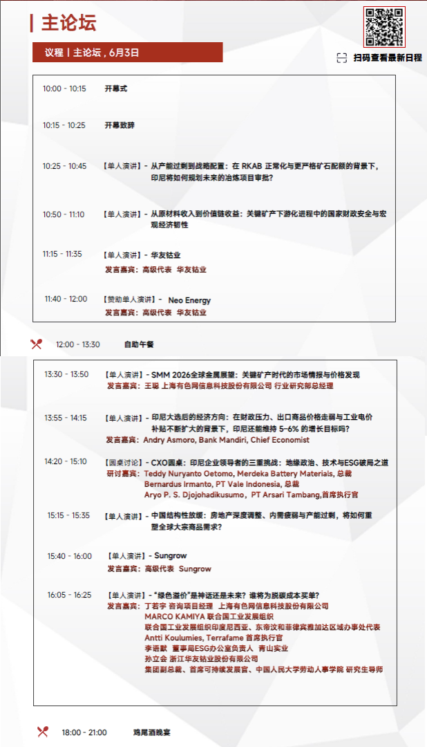 大会将围绕印尼矿产资源、产业政策及金属产业链协同展开,重点覆盖镍、铝、锡等关键品种及相关产业链环节。