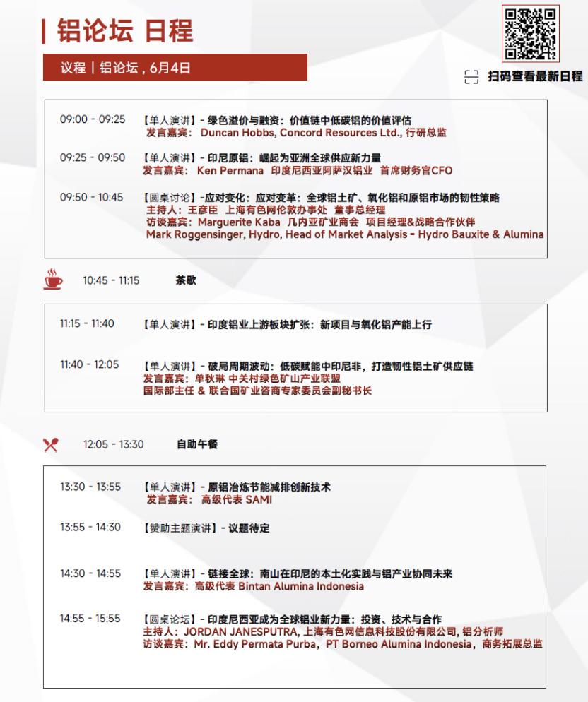 · 6月4日:镍钴 / 铝 / 煤炭与能源转型 三大会场、高级慈善晚宴(需单独付费参与)